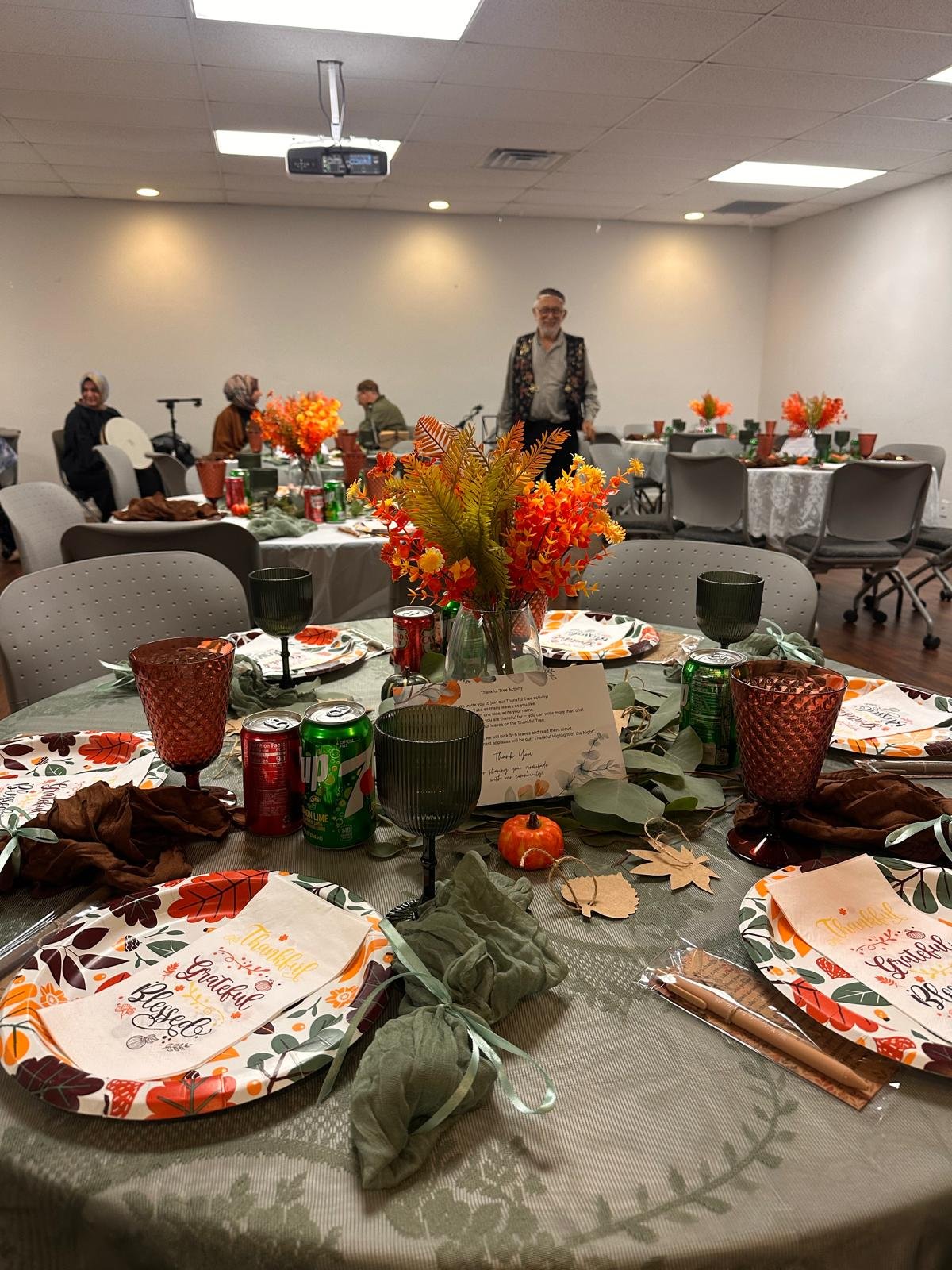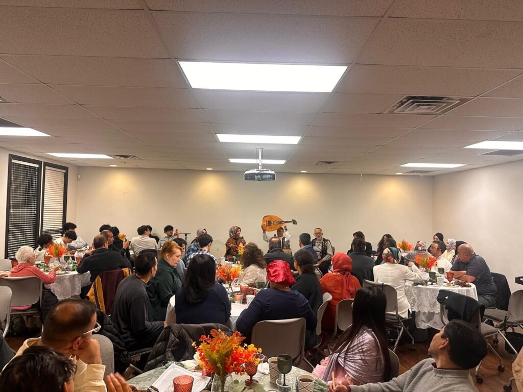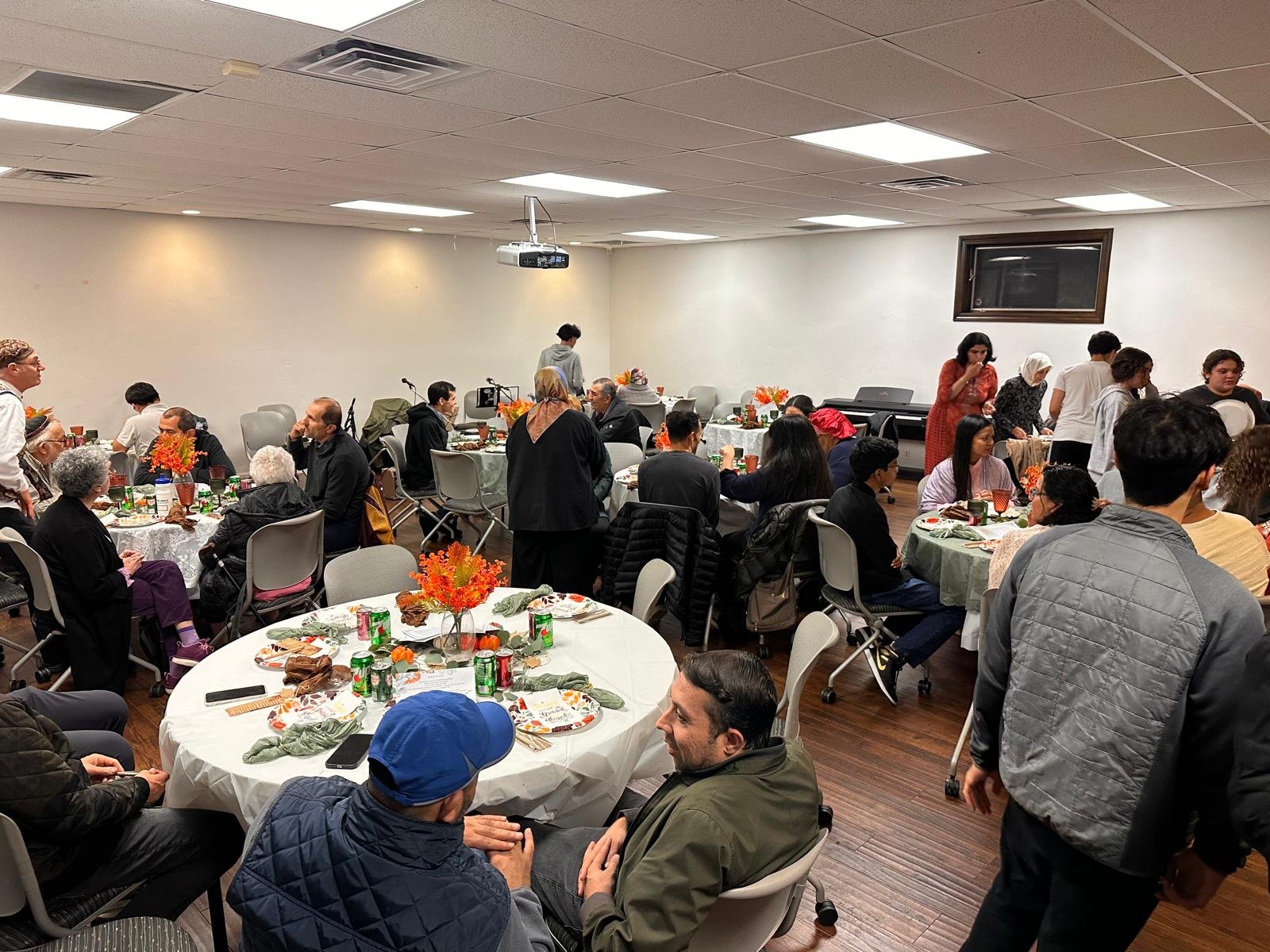 The evening included a shared Thanksgiving meal, prayers for peace, and a gratitude-sharing session in which participants reflected on what they were thankful for. These moments of reflection emphasized shared values of compassion, unity, and mutual respect.